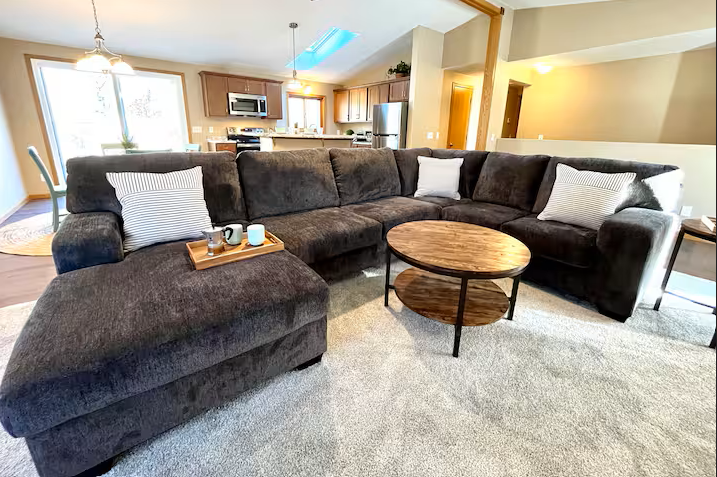 Step inside our inviting Airbnb, and you'll find a comfortable and stylish living room featuring a cozy gas fireplace, perfect for gathering and unwinding after a day of adventure. The fully equipped kitchen allows you to prepare delicious meals, with modern appliances and ample counter space for your convenience.